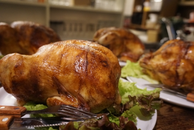 そうですね、鳥の丸焼きのことをフィリピンではチキンマノックって言って炭火でこんがり美味しく焼き上げます。