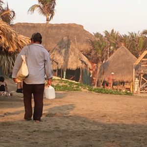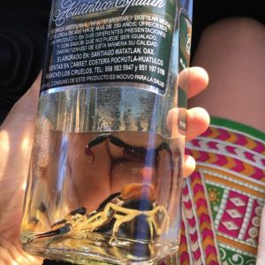 (メキシコで出会ったメスカル売りのおじさん。右手のボトルがメスカルです。)