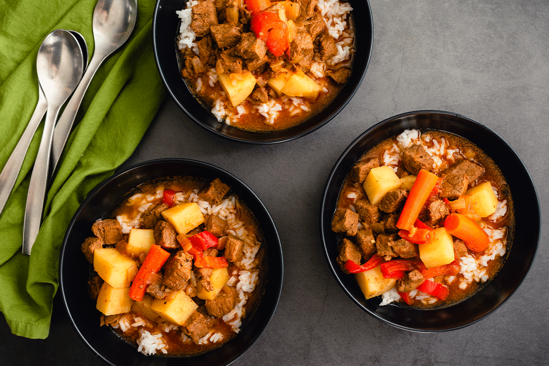 メチャドは、フィリピンの家庭料理や特別なイベントでよく食べられ、フィリピン料理の代表的な一品です。